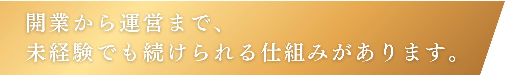 初月の売上を最大化するため、集客支援と経営指導をサポート。開業直後が最も大切な時期です。ここで失敗しないよう、私たちが全力でバックアップします。